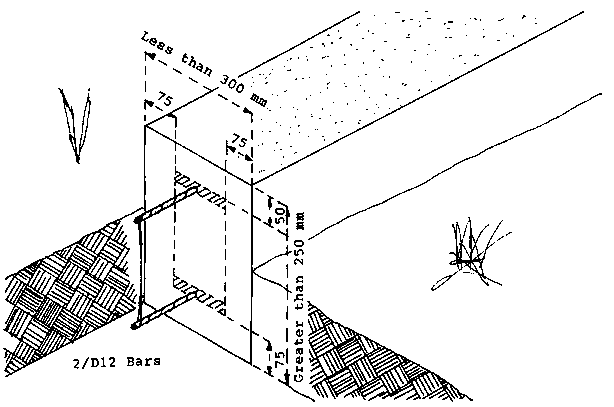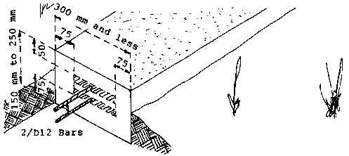 Strip footing is the thicker section of concrete at the base of a column, load-bearing wall, masonry wall or block wall. The strip footing is reinforced by D12 (deformed 12 mm diameter) bars. The cement mortar should be composed of one part by volume of cement to four parts by volume of sand. (1:4) For vertical reinforcement again D12 bars are used and spaced 600 mm apart too.