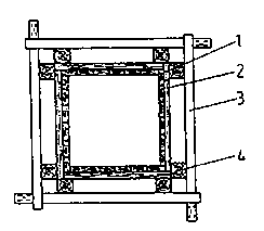 1 stull, 2 screw tie, 3 bracing, 4 waler 5 post, 6 cleaning hole, 7 thrust-board