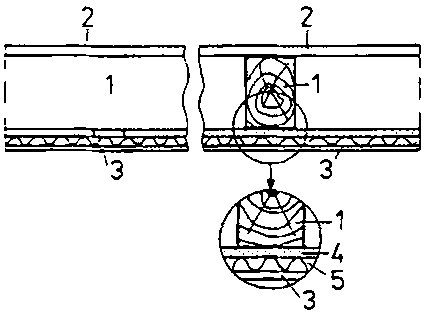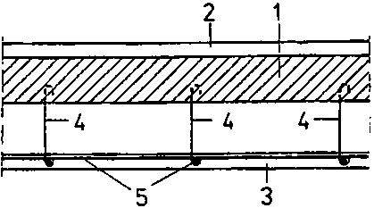 1 bare ceiling, 2 top ceiling, 3 false ceiling (stucco ceiling), 4 non-corrosive round steel bars as suspension bars, 5 non-corrosive reinforcing steel bars