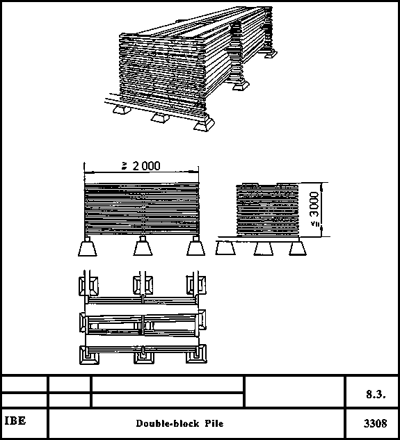 8. Continue storing boards from other trunks on the lower blocks according to steps 3. to 7. above until the intended pile height is reached. | |
