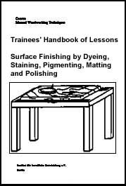 |  |  | Surface Finish by Dyeing, Staining, Pigmenting, Matting and Polishing - Course: Manual woodworking techniques. Trainees' handbook of lessons (Institut für Berufliche Entwicklung, 22 p.) |  |  | (introduction...) |  |  | 1. Purpose of Surface Treatment of Wood |  |  | 2. Pretreatment Processes |  |  | 2.1. Washing, Sanding and De-dusting |  |  | 2.2. Deresinification |  |  | 2.3. Bleaching |  |  | 2.4. Dyeing |  |  | 2.5. Staining |  |  | 2.6. Pigmenting |  |  | 2.7. Filling the Pores |  |  | 3. Coating Processes |  |  | 3.1. Basic Terms |  |  | 3.2. Matting |  |  | 3.3. Varnishing |  |  | 3.4. Polishing |  |  | 4. Selection of Chemicals |  |  | 4.1. Acids |  |  | 4.2. Solutions |  |  | 4.3. Salts |  |  | 4.4. Bleaching Agents |