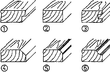 (1) fold, (2) plane, (3) slot, (4) grain, (5) quarter round, (6) quarter chamfer