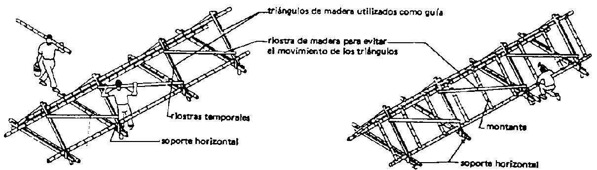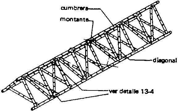 Los componentes de bambú son unidos por medio de material de amarre, tarugos, pernos o clavos. Un gran numero de posibles uniones para el bambú son mostrados en el manual de construcción.