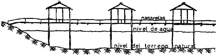 Ventajas: construcción simple; posición estable durante inundaciones.