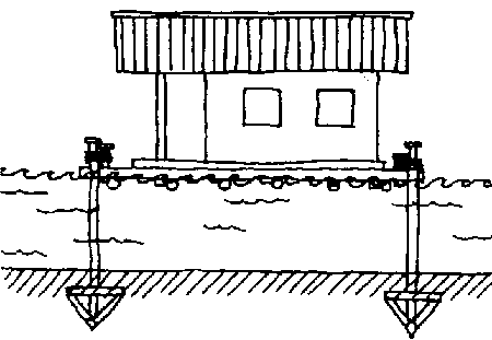 Problemas: construcción más complicada; mantenimiento de los flotadores (sin perforaciones!); inestabilidad durante inundaciones (tendencia de "bailar" sobre las olas).