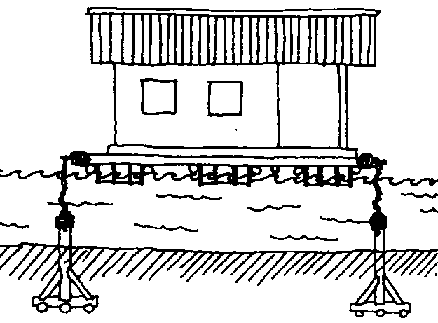 Problemas: gradual humedecimiento del piso; la balsa se va hundiendo con el incremento de la carga de personas, sus pertenencias y la absorción gradual de agua. Hay riego de pandeo de los postes bajo la presión lateral del agua. Platfora sobre flotadores (ej. barriles de petróleo vacios).