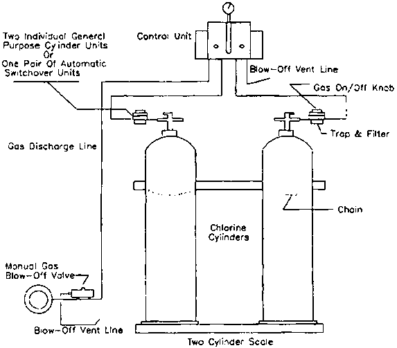 Figure 25 shows a typical chlorine gas cylinder system for gas chlorination treatment.
