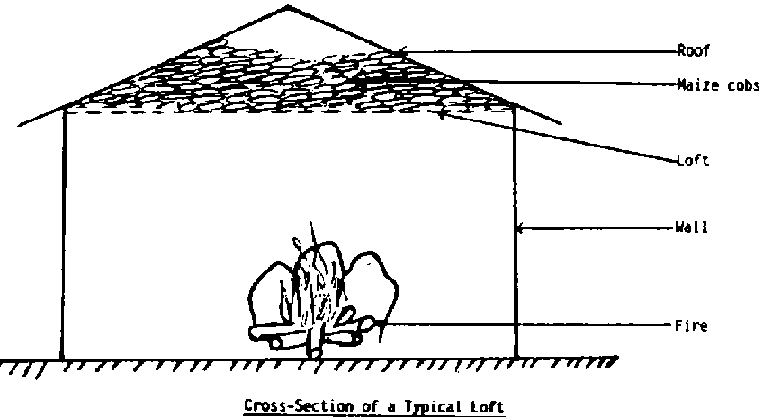 6) Similarly, when maize is dried on the loft, hot air/smoke facilitates the drying.