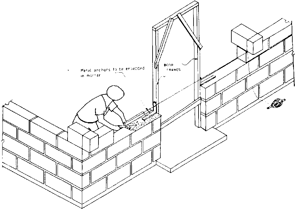 Figure 5.74 Framed timber door in concrete block wall with jamb blocks.