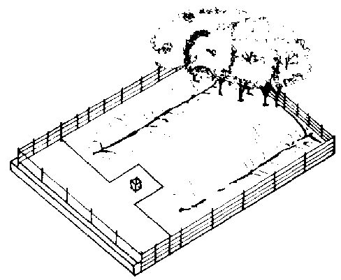 Figure 10. 5a Yard with fenceline feed trough, paved feed area and earth mound.