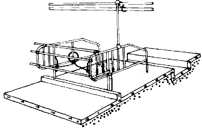 For the farmer with 10 to 30 cows and a yard with a paved shade and feed area, the milking parlour shown in Figure 10.15 is of suitable design. Two stands will be sufficient where the herd number is 8 to 14, but more stands should be added as indicated when the herd number increases. Hand milking would probably be used for an operation of this size. If machine milking is installed the vacuum pump and the engine, which powers it, can be put in the engine room, which is indicated in outline in the plan view. This is arranged by closing off a portion of the store room with a simple partition.
