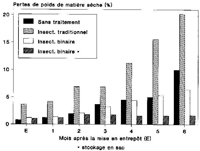 - stockage en sacs, traitement aux insecticides binaires