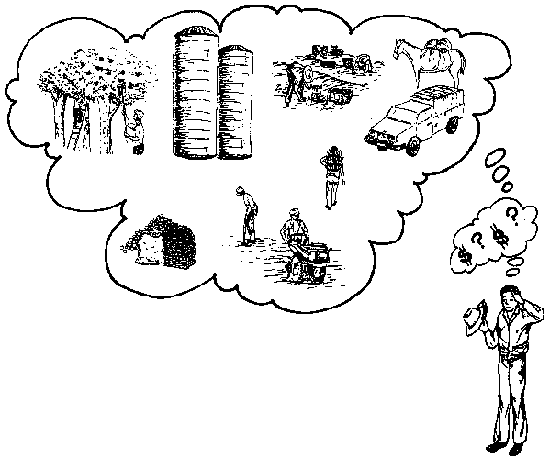 El mejor punto de partida para el análisis del sistema de producción es la identificación de las diversas etapas del proceso de producción. Para la mayoría de los cultivos esto implica alguna variación a partir de aquellos mostrados en la Figura 4.1. Basados en este modelo general, se pueden añadir y/o eliminar pasos hasta que todas las etapas importantes del proceso de producción del producto particular en estudio hayan sido identificadas.
