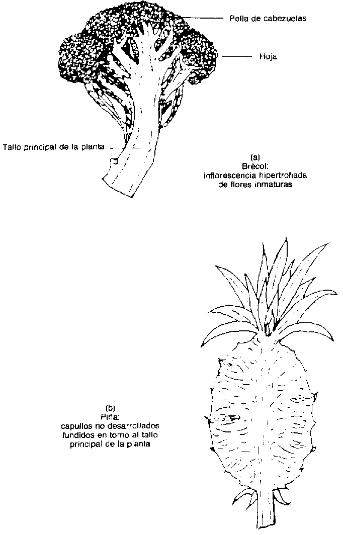 | Pella de cabezuelas florales | Brécol, coliflor (Figura 4a) |