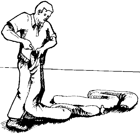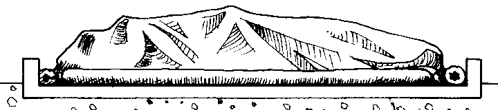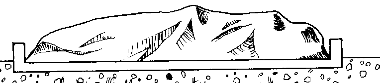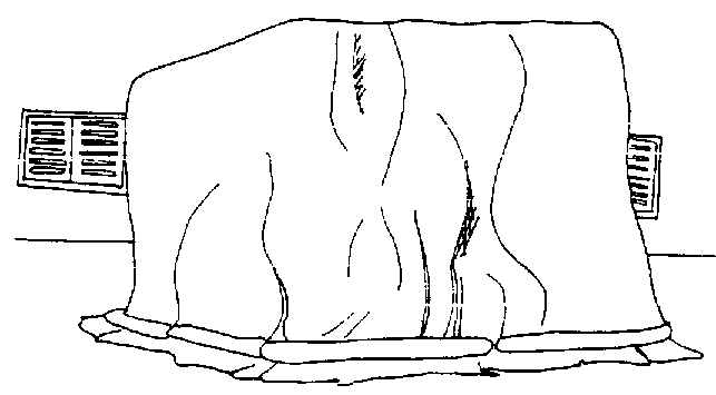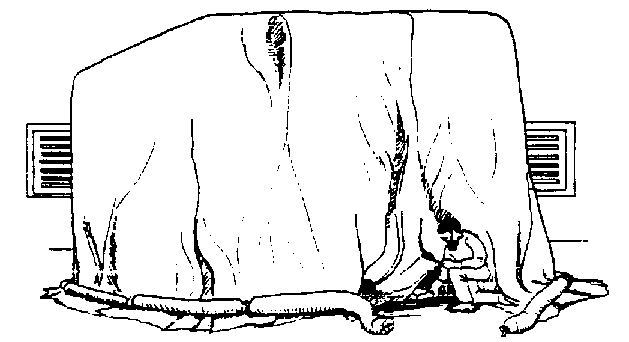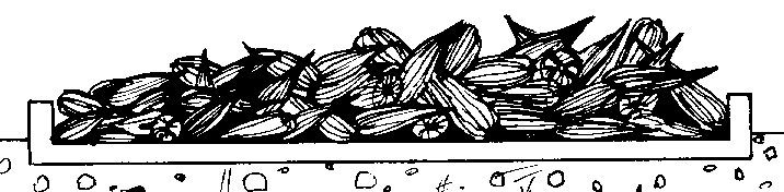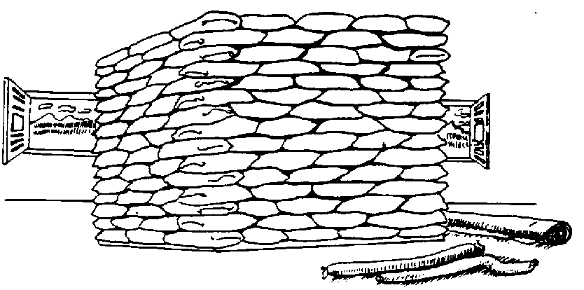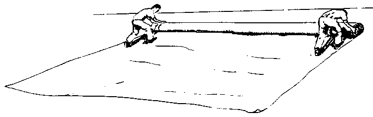 Confección de las culebras de arena. Se cortan fajas de 25 cm de ancho por dos o tres metros de largo y se hace la costura formando un tubo. Se llena con arena seca hasta cerca de unos 25 cm del extremo (figura 27).