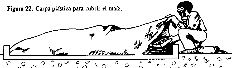 Figura 44. Colocar una cubierta plástica sobre la masa de granos.