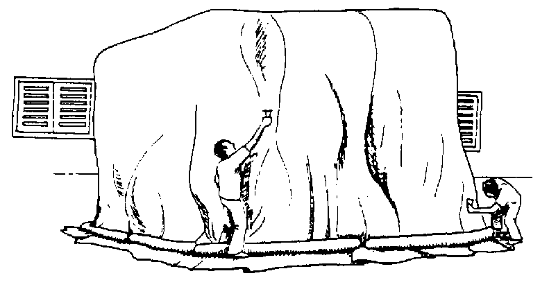7. Sellar la carpa plástica con el piso del almacén utilizando "culebras de arenan, en forma muy cuidadosa para evitar que se escape el gas (figura 34).