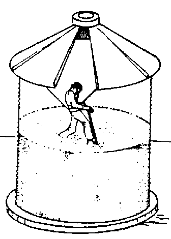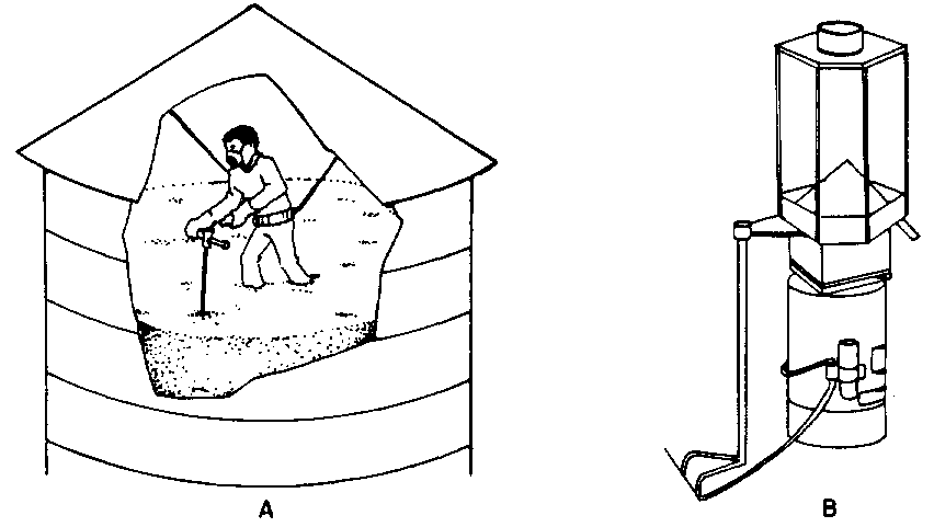 Tapar con papel kraft bituminoso, cinta adhesiva o plástico todas las aberturas más comunes del silo, tales como: ventanas de inspección (lateral y superior), ventiladores de aireación, puntos de carga y descarga, respiradores, etc. (figura 40). A continuación se especifican las etapas a seguir: