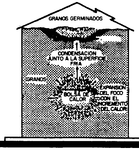 Los granos generalmente se almacenan a temperaturas relativamente altas, en comparación con las bajas temperaturas ambientales que pueden ocurrir, por ejemplo en una reglón en que el invierno es riguroso. De esa forma, si la temperatura ambiental es menor, los granos que están próximos a las paredes y a la parte superior de los silos metálicos tendrán una temperatura menor que la del interior de la masa y por lo tanto, existen condiciones para el establecimiento de corrientes de aire movido por convección natural.