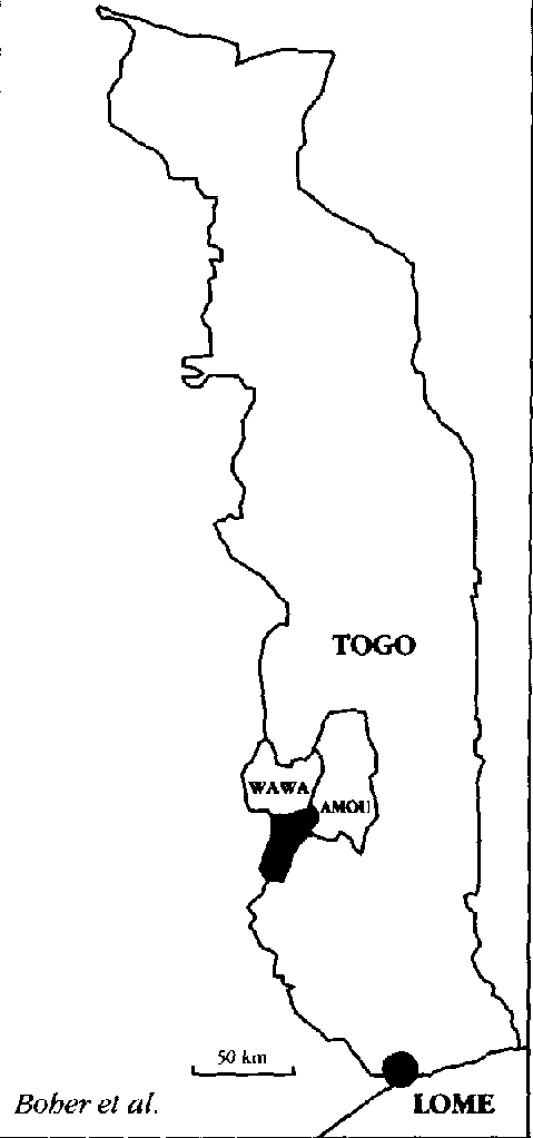 Une enquête réalisée en 1989 et reconduite en 1990 sur le plateau de Danyi (figure 1) a confirmé l'importance de cette maladie. Sur 60 champs paysans suivis pendant deux années, 38 ont présenté des symptômes, avec des taux de mortalité atteignant souvent 20 à 30%.
